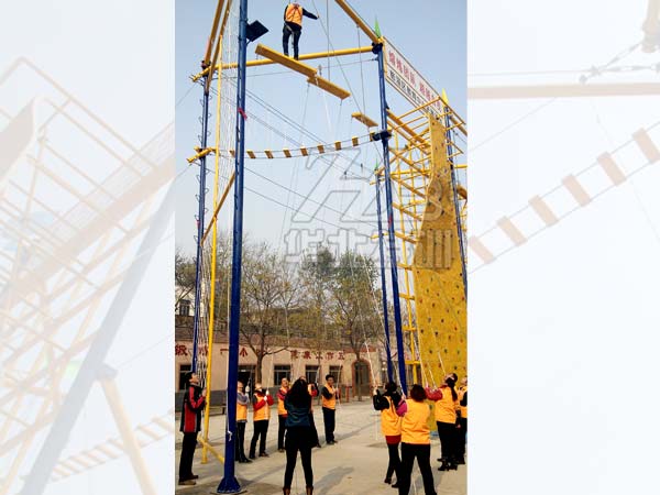 規格:占地42米長×6米寬,主體長41.5米×寬6米×高8米。 包含項目:獨木橋、翹板橋、橫渡天梯、吊索橋、斷橋、攜手并進、相互依存、禮讓通行、網墻(2…